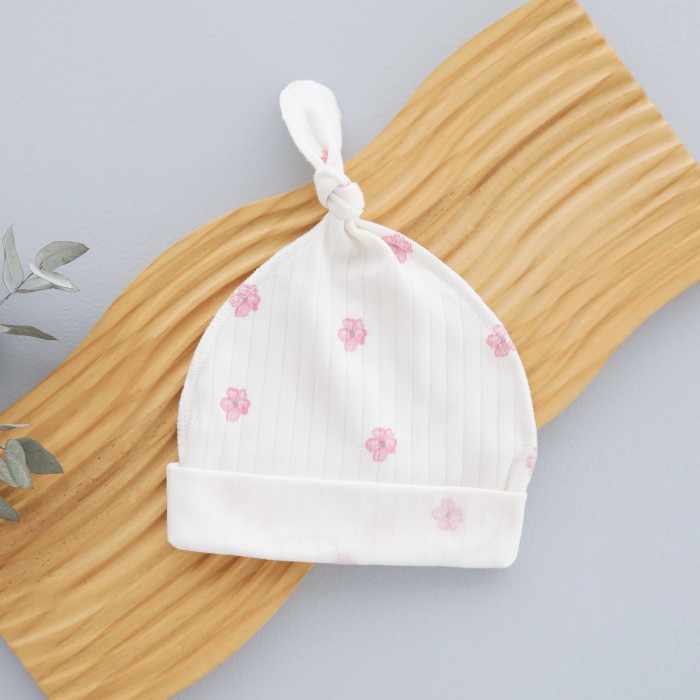 Шапочка вузликом Квіти Рожевий (Рубчик) 62 (3-6міс)