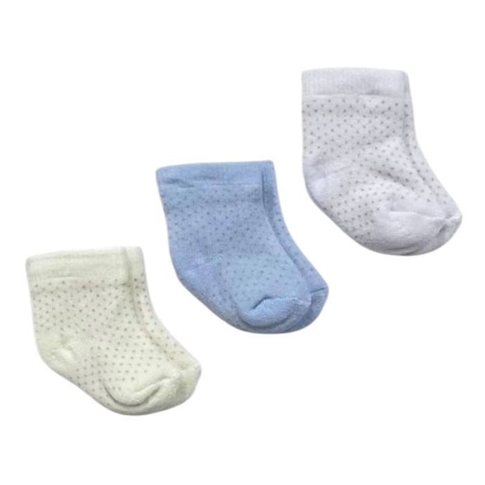 Шкарпетки 3 пари: Молочний, блакитний, білий в горошок (махрові) 56 (0-3міс)