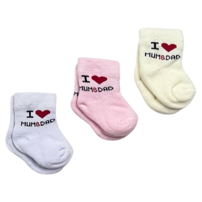 Шкарпетки 3 пари: Молочний, рожевий, білий Кохаю (махрові) 56 (0-3міс)