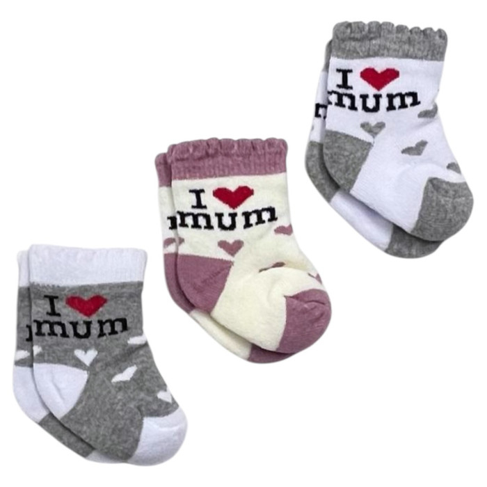 Шкарпетки 3 пари: Сірий, бордовий I love mum (махрові) 56 (0-3міс)