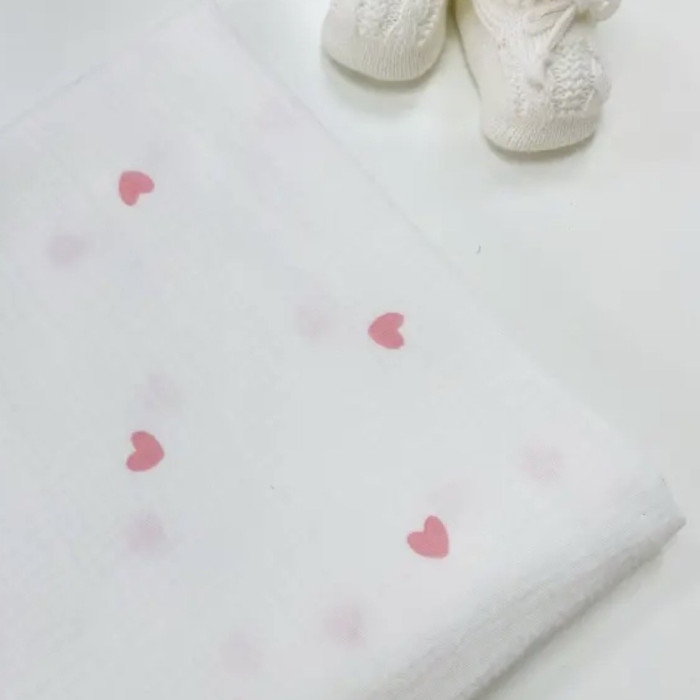 Муслінова пелюшка жатка 2 шари Сердечка рожеві Дрібні на білому 90/65