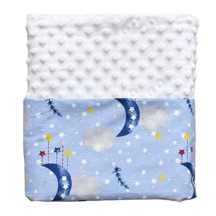 Плед плюш, без утеплення Місяць Хмаринка Блакитний/ Білий плюш пупиришка 100/80