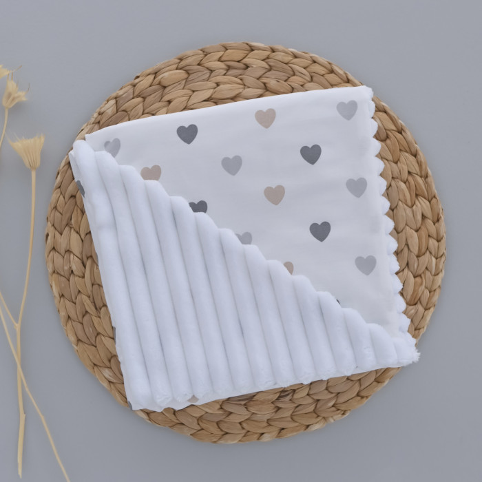 Плед плюш, без утеплення Сердечка Бежевий/ Білий плюш 100/80