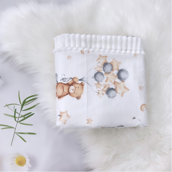Плед плюш, без утеплення Ведмедик з кульками / Білий плюш 100/80
