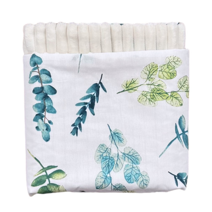 Плед плюш Листики Зелений/ Молочний плюш 100/80