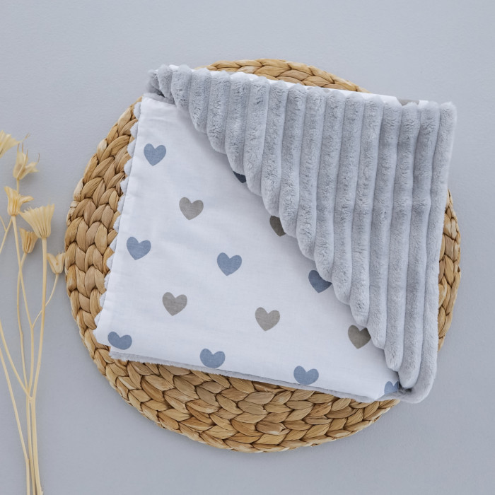 Плед плюш Сердечка Сірий/ Сірий плюш 100/80