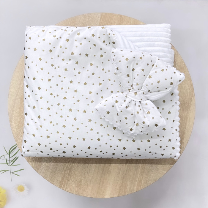 Плед зі зʼємним утепленням та бантом -резинкою Зірки золото (гліттер) /Білий плюш 90/80