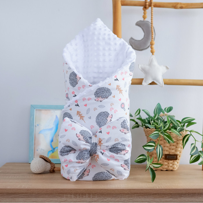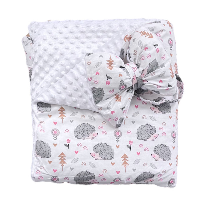Плед зі зʼємним утеплювачем та бантом-резинкою Їжачки Сірий / Білий плюш пупиришка 90/80