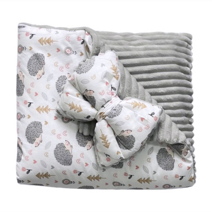 Плед зі з‘ємним утеплювачем та бантом-резинкою Їжачки Сірий / Сірий плюш 90/80