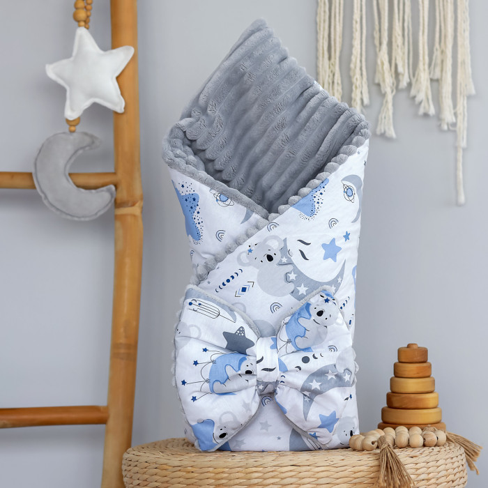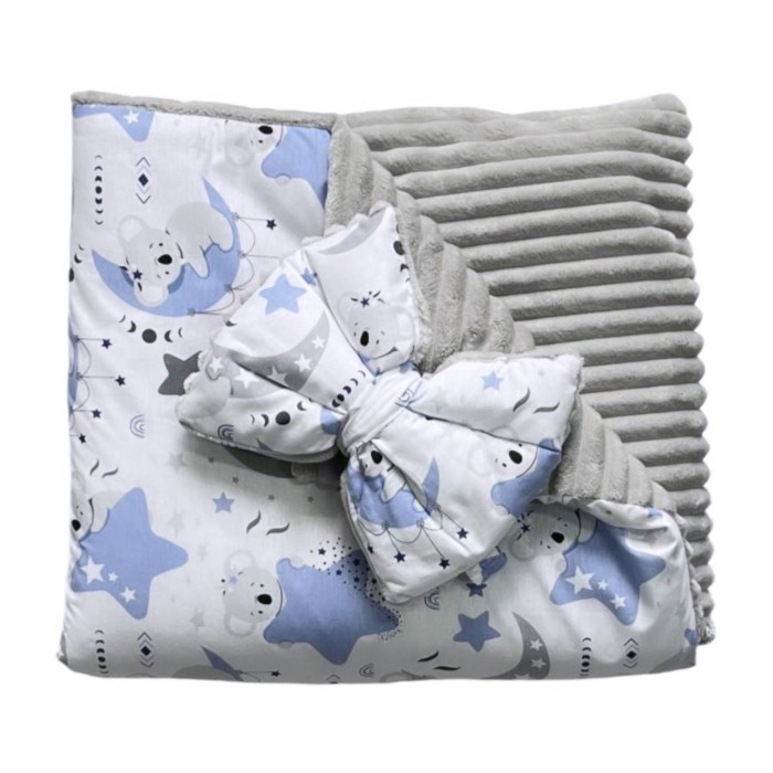 Плед зі з‘ємним утеплювачем та бантом-резинкою Коала Блакитний / Сірий плюш 90/80