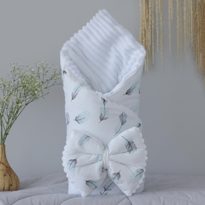 Плед зі з‘ємним утеплювачем та бантом-резинкою Пірʼїнки Блакитний /Білий плюш 90/80