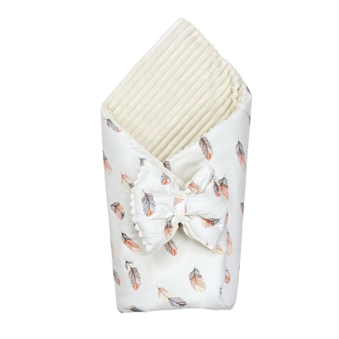 Плед зі з‘ємним утеплювачем та бантом-резинкою Пір‘їнки Коралові /Молочний плюш 90/80