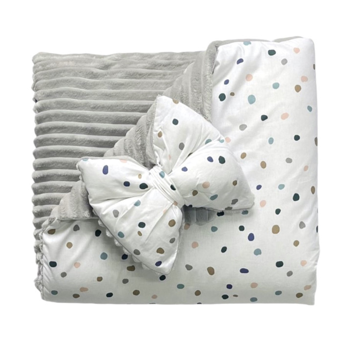 Плед зі з‘ємним утеплювачем та бантом-резинкою Точки / Сірий плюш 90/80