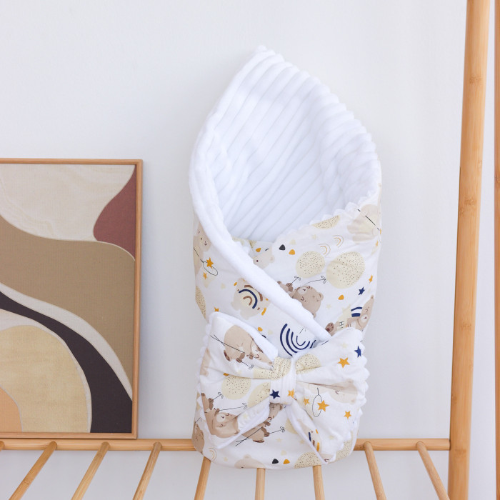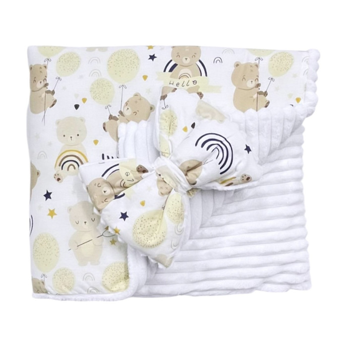 Плед зі з‘ємним утеплювачем та бантом-резинкою Ведмедик Бежевий/ Білий плюш 90/80