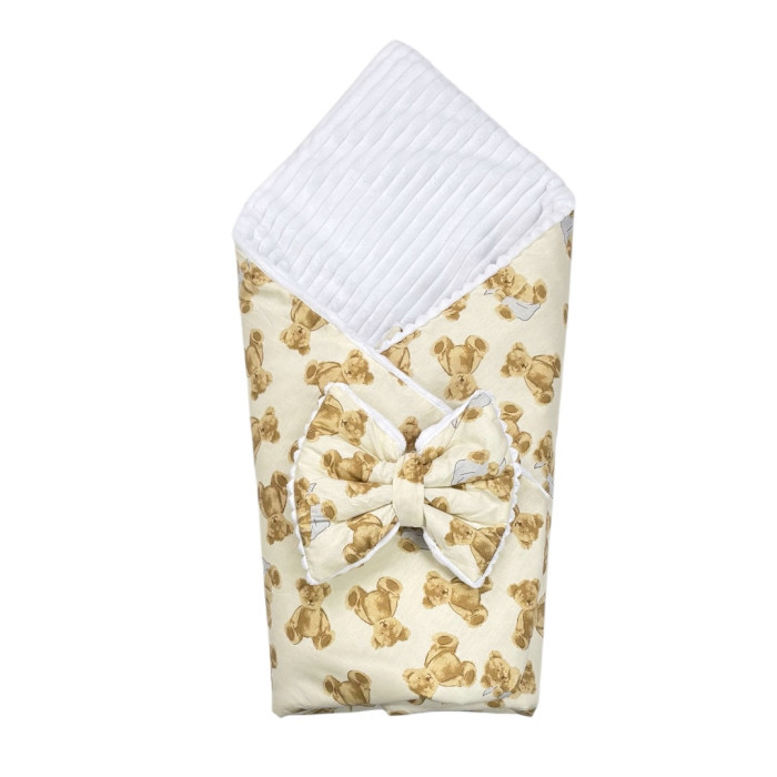 Плед зі з‘ємним утеплювачем та бантом-резинкою Ведмедики з хусточкою Бежевий/ Білий плюш 90/80
