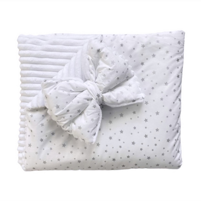 Плед зі з‘ємним утеплювачем та бантом-резинкою Зірки срібний (гліттер)/ Білий плюш 90/80