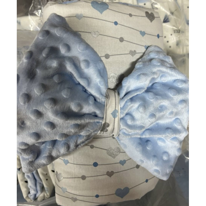 Плед зі зʼємним утепленням та бантом -резинкою Сердечка Блакитний -Сірий (гліттер) /Блакитний плюш пупиришка 90/80