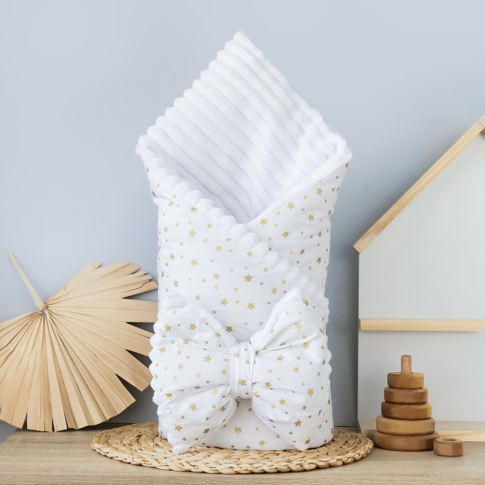 Плед зі зʼємним утепленням та бантом -резинкою Зірки золото (гліттер) /Білий плюш 90/80