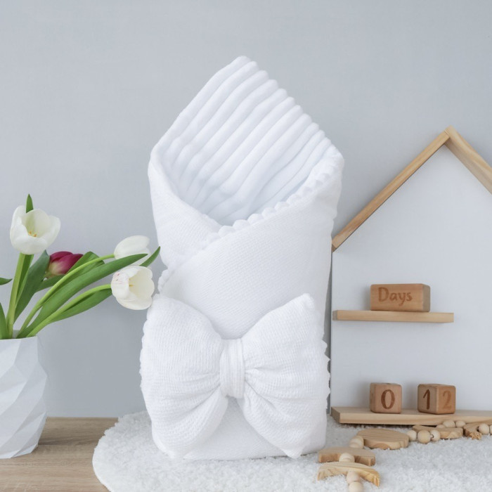 Плед зі з‘ємним утеплювачем та бантом-резинкою Вафелька Айворі / Білий плюш 90/80