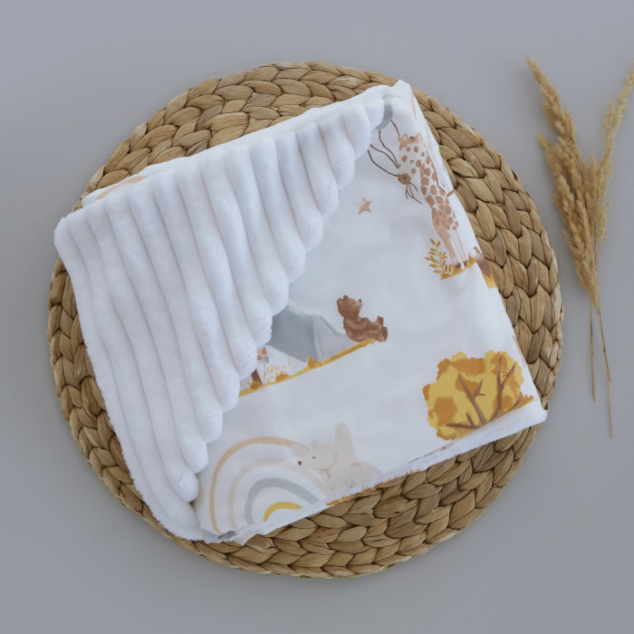 Плед бавовна /плюш, без утеплення Зоопарк/ Білий плюш 100/80