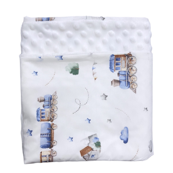 Плед без утеплення, Паровоз Синій/ Білий плюш пупиришка 100/80