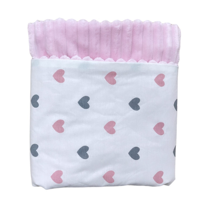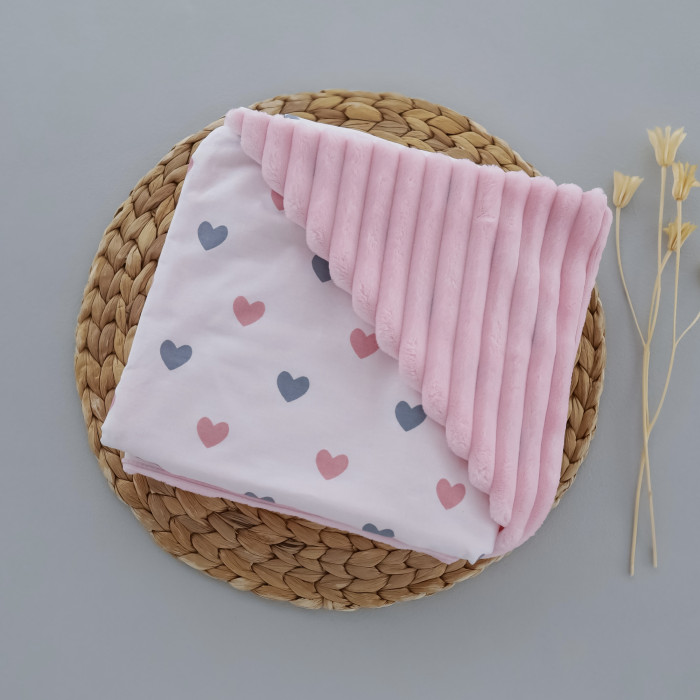Плед без утеплення, Сердечка Рожевий/ Рожевий плюш 100/80
