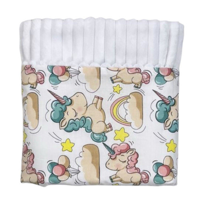 Плед плюш, без утеплення Единоріжки Молочний / Білий плюш 100/80