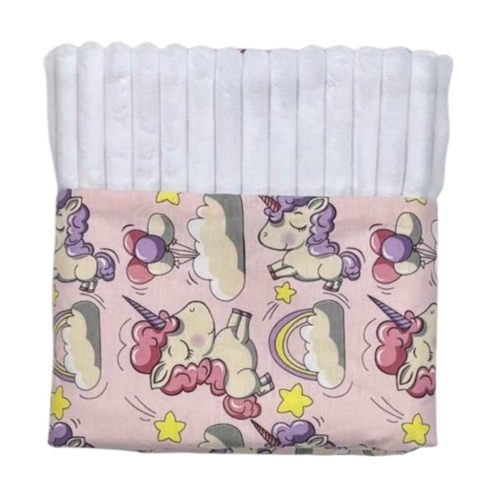 Плед плюш, без утеплення Единоріжки Рожевий / Білий плюш 100/80