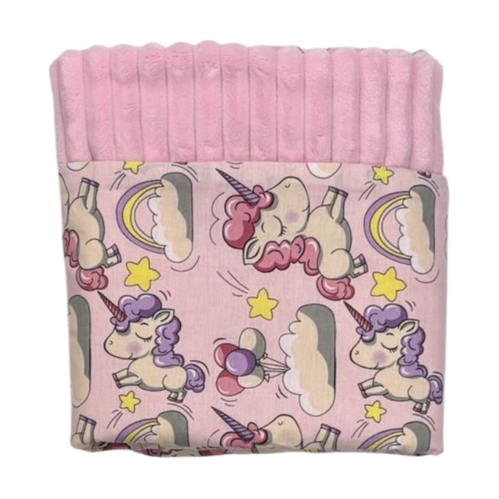 Плед плюш, без утеплення Единоріжки Рожевий / Рожевий плюш 100/80