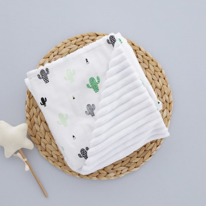 Плед плюш, без утеплення Кактус/ Білий плюш 100/80