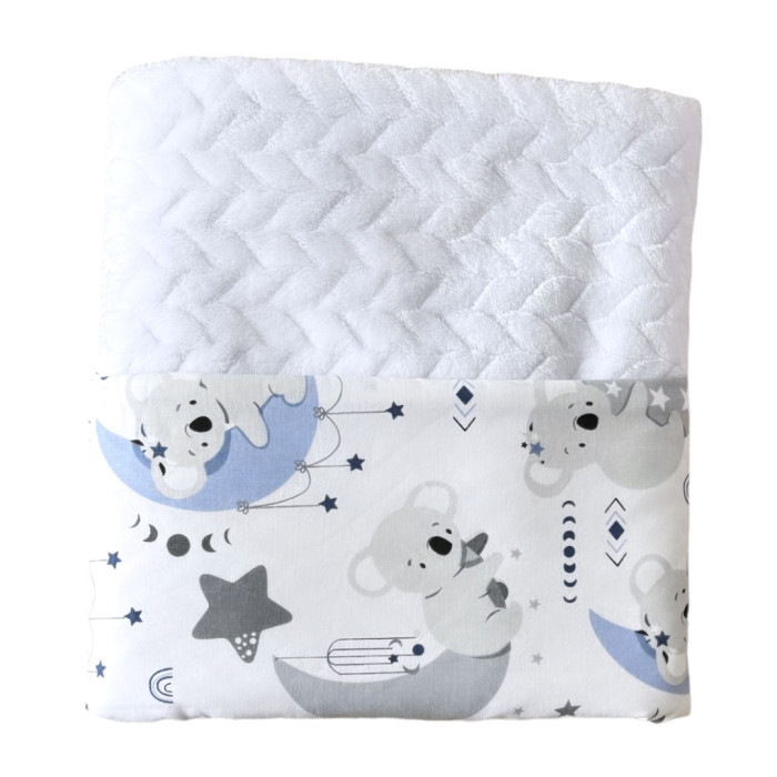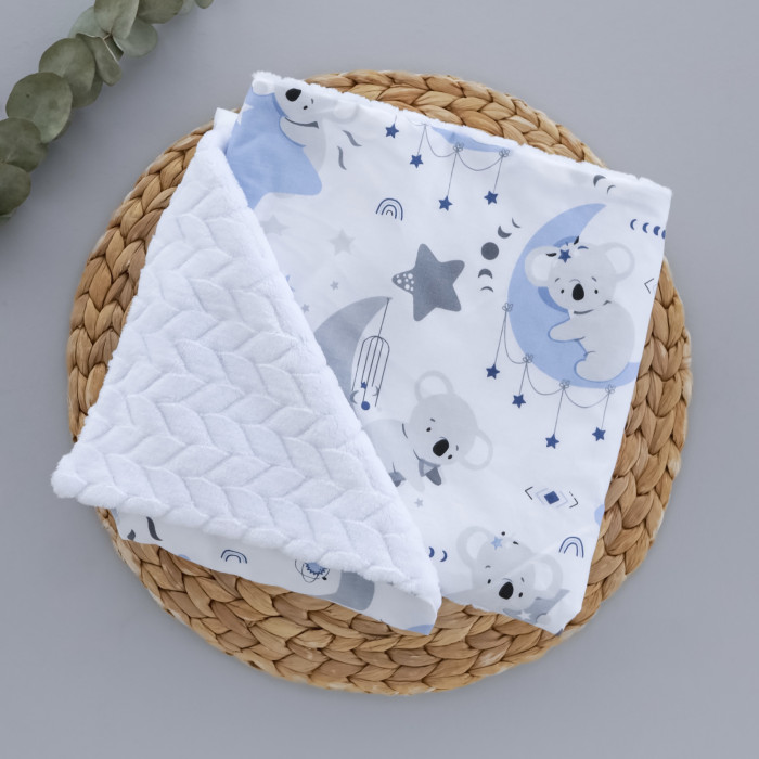 Плед плюш без утеплення Коала Блакитний / Білий плюш косичка 100/80