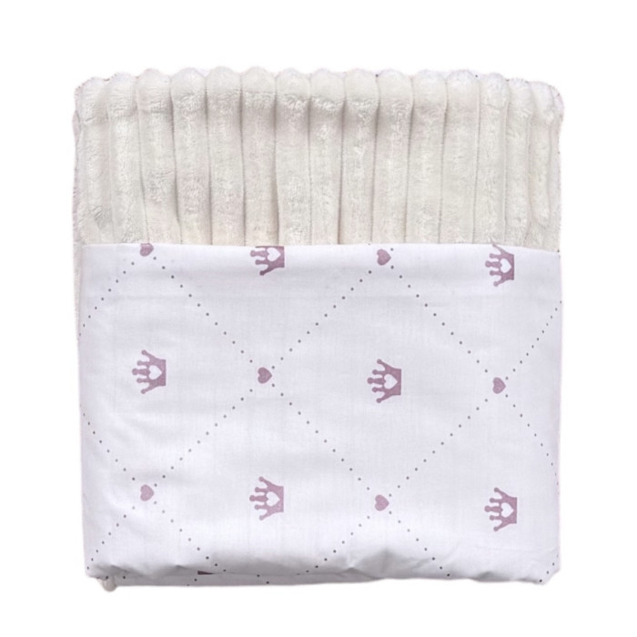 Плед плюш, без утеплення Корони Рожевий (гліттер)/ Молочний плюш 100/80