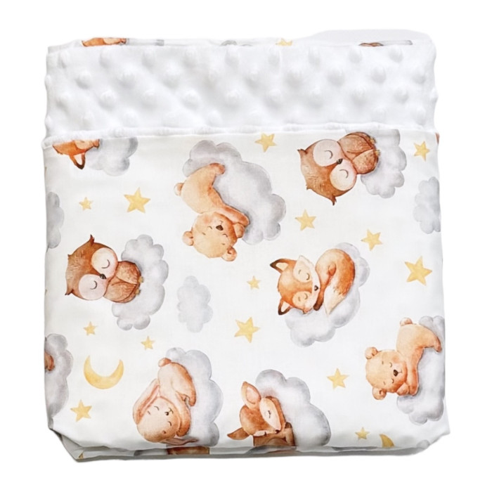 Плед плюш, без утеплення Лисички на хмаринці/ Білий плюш пупиришка 100/80