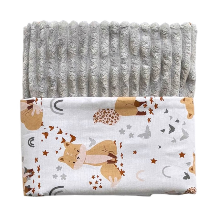 Плед плюш, без утеплення Лисички /Сірий плюш 100/80