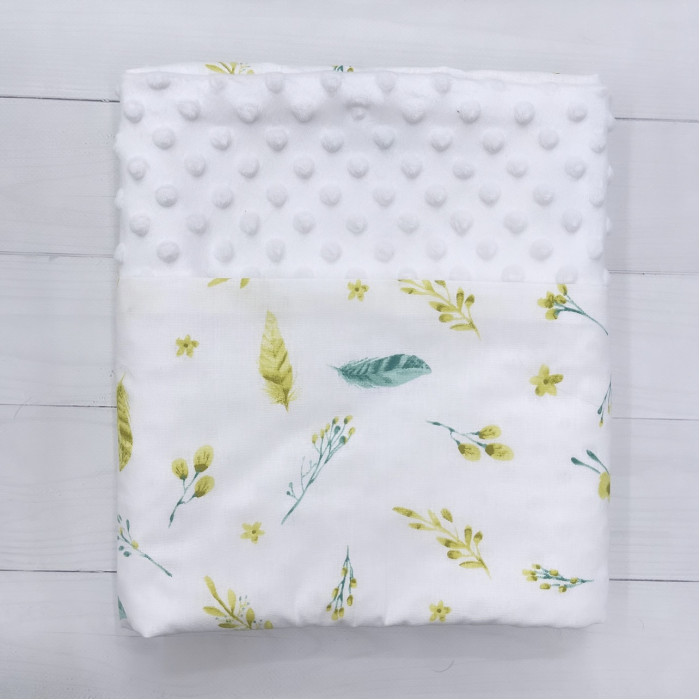 Плед плюш, без утеплення Листики/ Білий плюш пупиришка 100/80