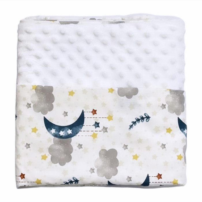 Плед плюш, без утеплення Місяць Хмаринка Бірюзовий / Білий плюш пупиришка 100/80