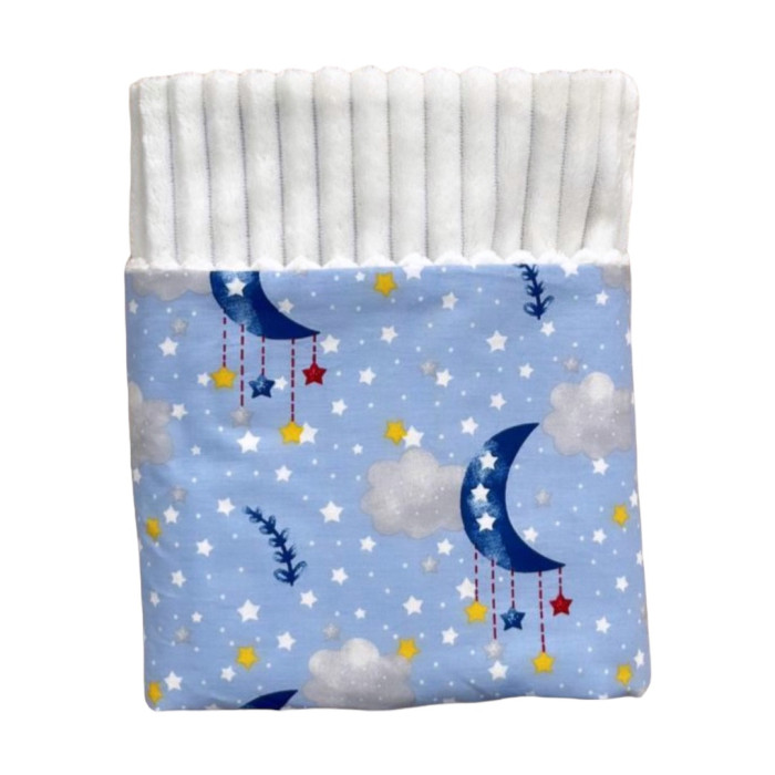 Плед плюш, без утеплення Місяць Хмаринка Блакитний / Білий плюш 100/80