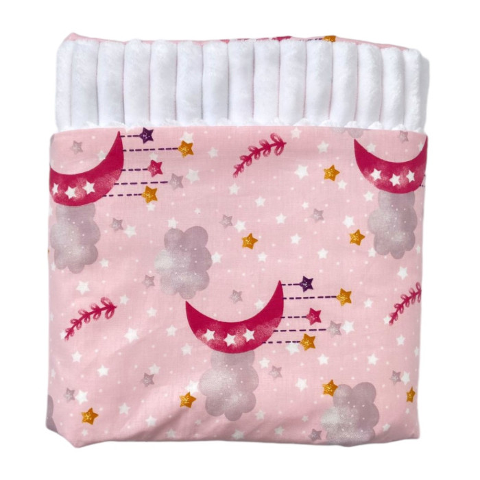 Плед плюш без утеплення Місяць Хмаринка Рожевий / Білий плюш 100/80