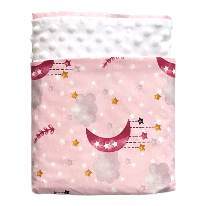 Плед плюш, без утеплення Місяць Хмаринка Рожевий / Білий плюш пупиришка 100/80