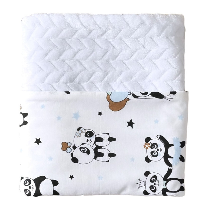 Плед плюш без утеплення Панда Блакитний / Білий плюш косичка 100/80