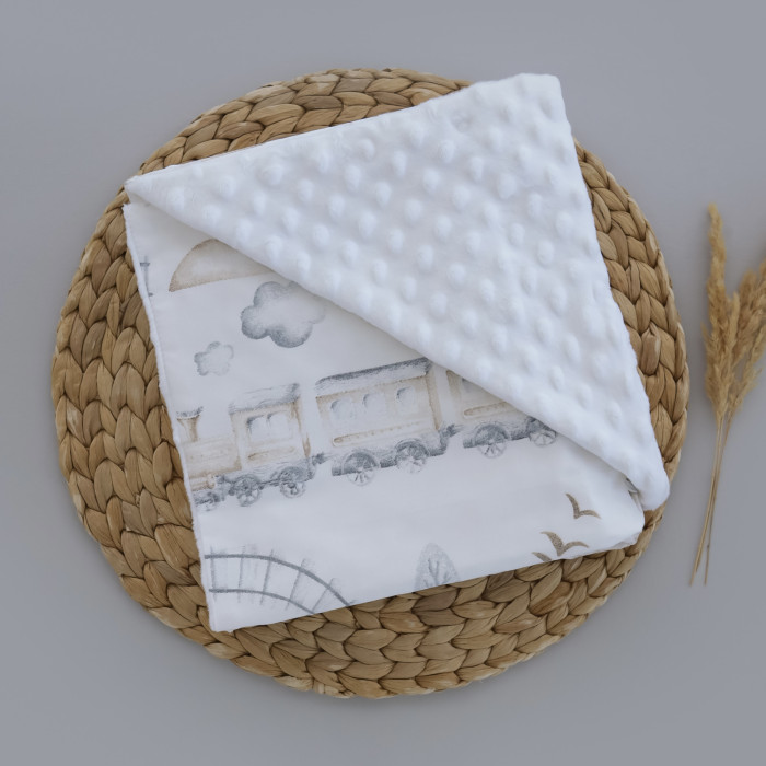 Плед плюш, без утеплення Потяг Бежевий/ Білий плюш пупиришка 100/80