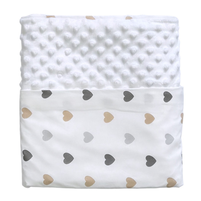 Плед плюш, без утеплення Сердечка Бежевий/ Білий плюш пупиришка 100/80
