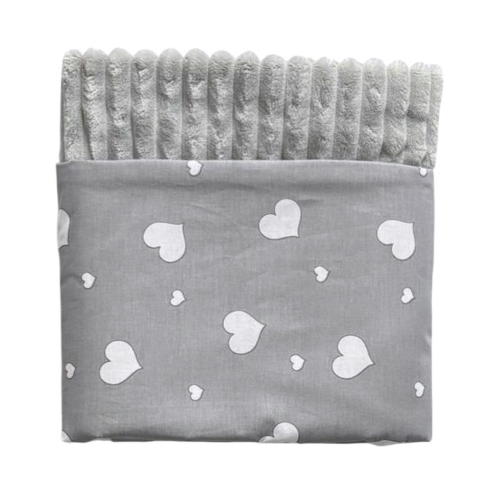 Плед плюш, без утеплення Сердечка білі на сірому /Сірий плюш 100/80