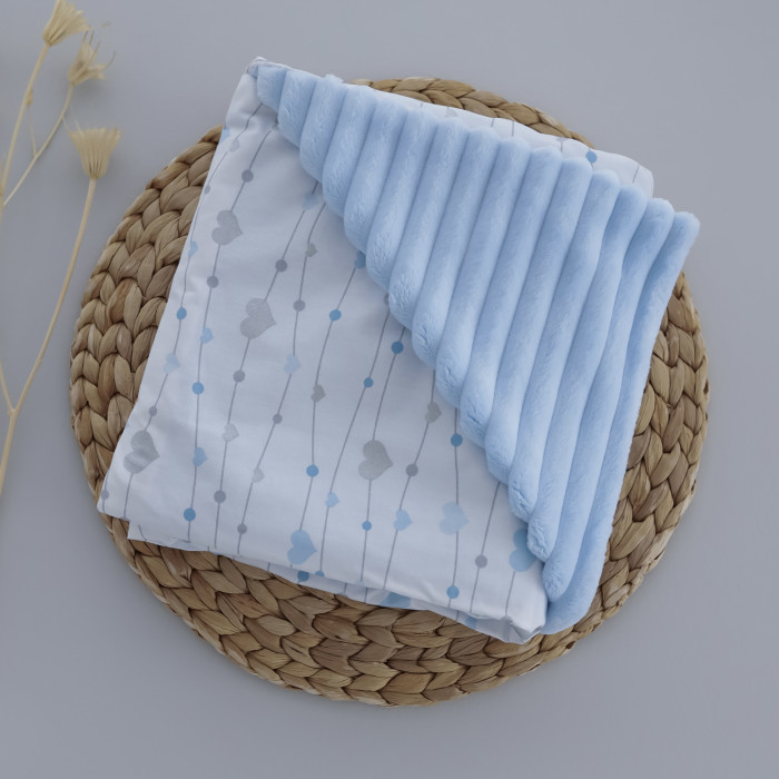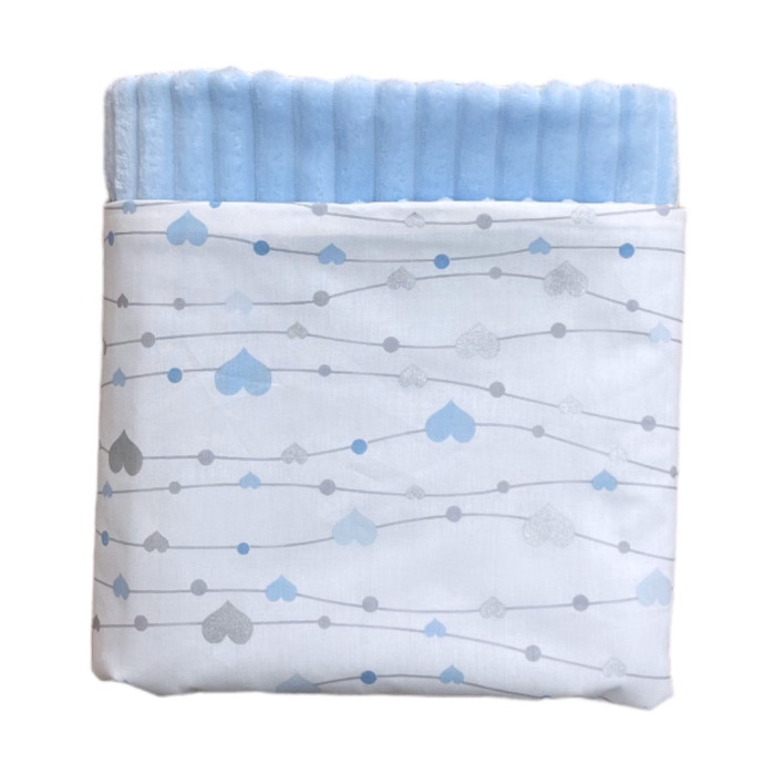 Плед плюш, без утеплення Сердечка Блакитний -Сірий (гліттер) /Блакитний плюш 100/80