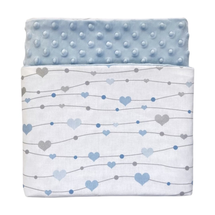 Плед плюш, без утеплення Сердечка Блакитний -Сірий (гліттер) / Блакитний плюш пупиришка 100/80