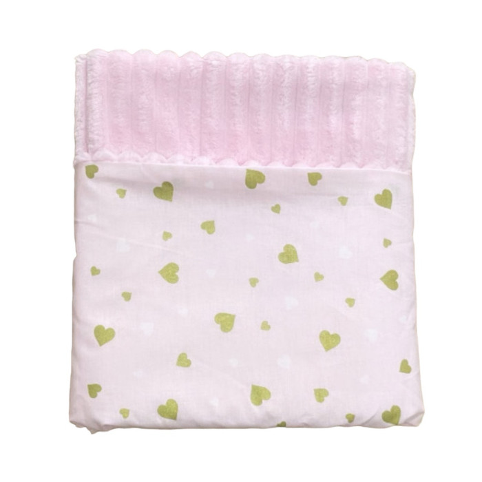 Плед плюш, без утеплення Сердечка Рожевий (гліттер)/ Рожевий плюш 100/80