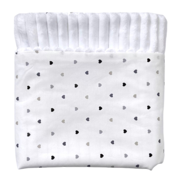 Плед плюш, без утеплення Сердечка Сірий- Чорний/ Білий плюш 100/80