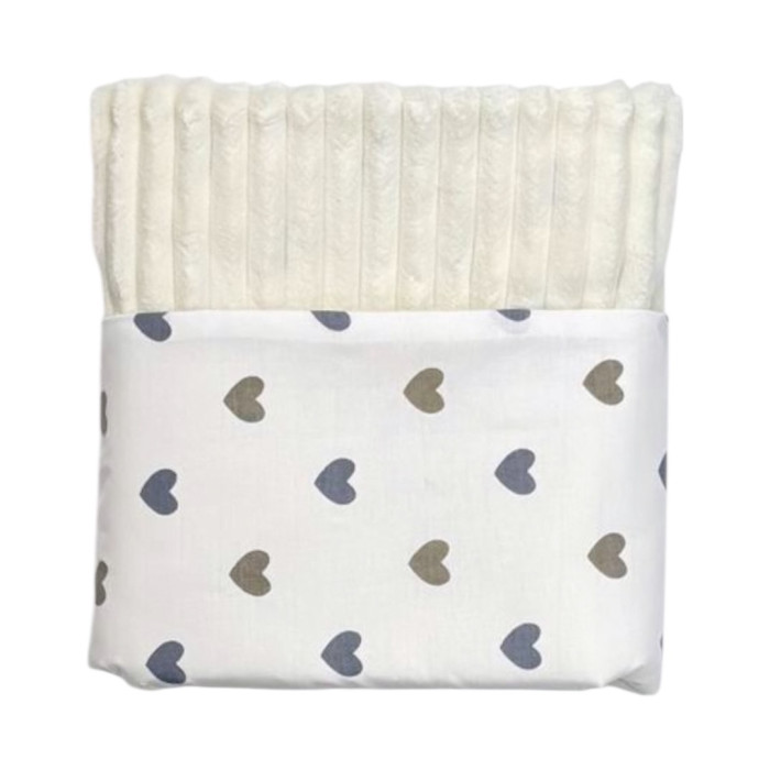 Плед плюш, без утеплення Сердечка Сірий/ Молочний плюш 100/80