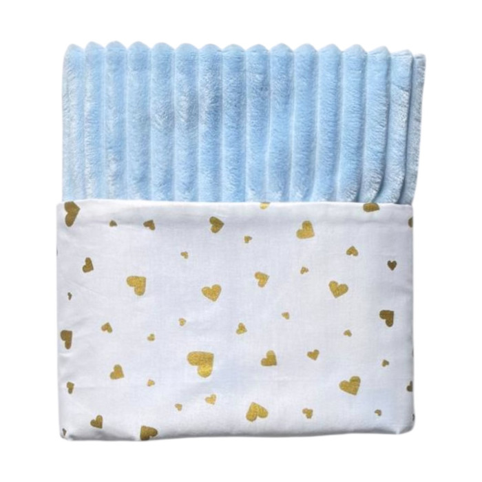 Плед плюш, без утеплення Сердечка Золотий (гліттер)/ Блакитний плюш 100/80