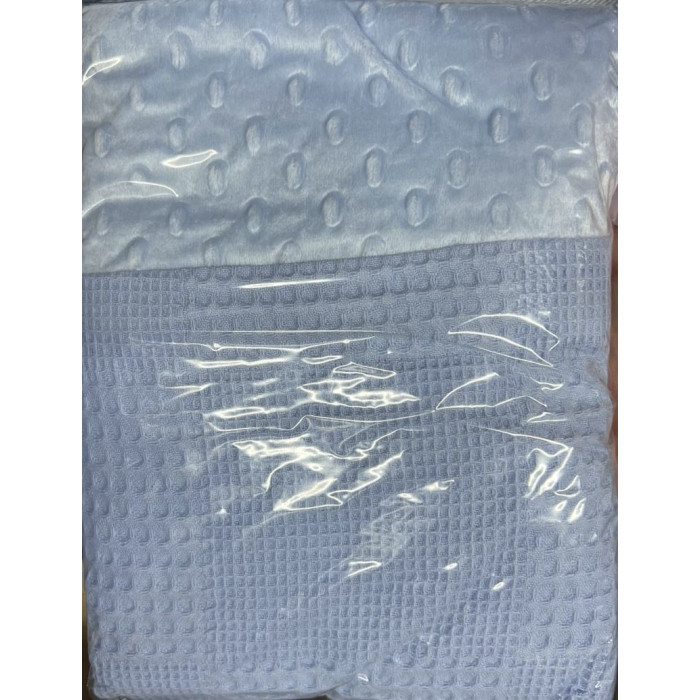 Плед плюш, без утеплення Вафелька Блакитний /Блакитний плюш пупиришка 100/80